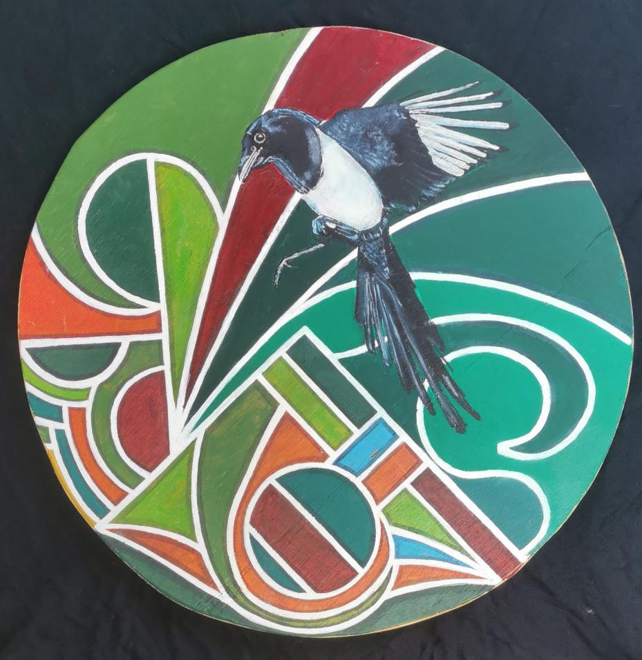 Magpie lands on an abstract perch